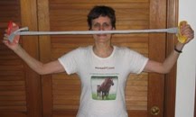 Attaching stretchy spandex like material between two handles provides a great motor planning activity that increases body awareness because it provides proprioceptive feedback. I ask children to do this while riding a horse and work on following directions such as- hold arms up high, turn to the left or touch the head with it. Here are some other tips for increasing body awareness: